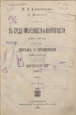 Т. 10 : В среде умеренности и аккуратности, [1874-1877 гг.] ; Письма о провинции, [1868 - 1870 гг.] ; Итоги, [1876 г.]. - Третье издание.