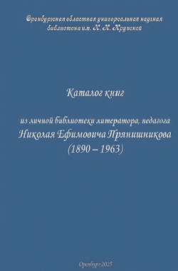 Каталог книг из личной библиотеки литератора, педагога Николая Ефимовича Прянишникова (1890 – 1963) : из фондов Оренбургской областной универсальной научной библиотеки им. Н. К. Крупской / составитель С. А. Четвериков ; ответственный за выпуск Е. С. Бурлакова.
