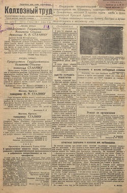 Колхозный труд. - 1945. - № 1 (11 янв). 1945