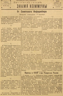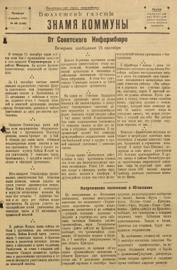 Бюллетень газеты "Знамя Коммуны". - 1942. - № 46 (17 сентября). 1942
