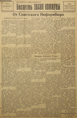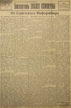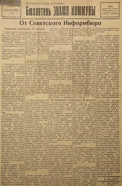 Бюллетень газеты "Знамя Коммуны". - 1941. - № 12 (17 августа). 1941