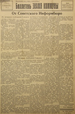 Бюллетень газеты "Знамя Коммуны". - 1941. - № 6 (7 августа). 1941
