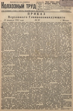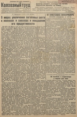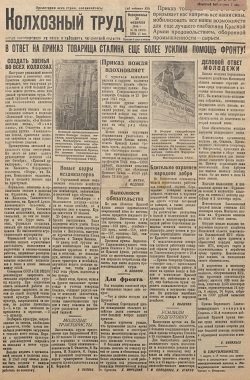 Колхозный труд. - 1943. - № 33 (15 апр). 1943