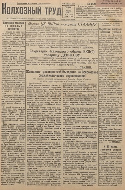Колхозный труд. - 1943. - № 27 (7 март). 1943