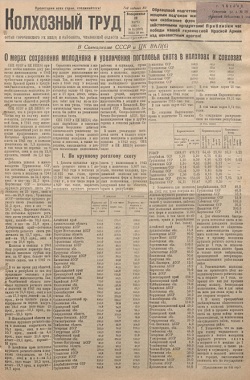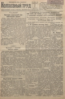Колхозный труд. - 1942. - № 33 (22 март). 1942