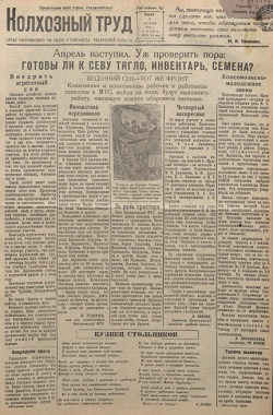Колхозный труд. - 1942. - № 37 (1 апр). 1942